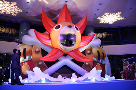 ※高さ約7メートルのサウザンド・サニー号が展示。毎日11:30と12:00以降1時間おきにロングバージョンのイルミネーションショー、12:30から1時間おきにガオン砲発射のショーを実施。
