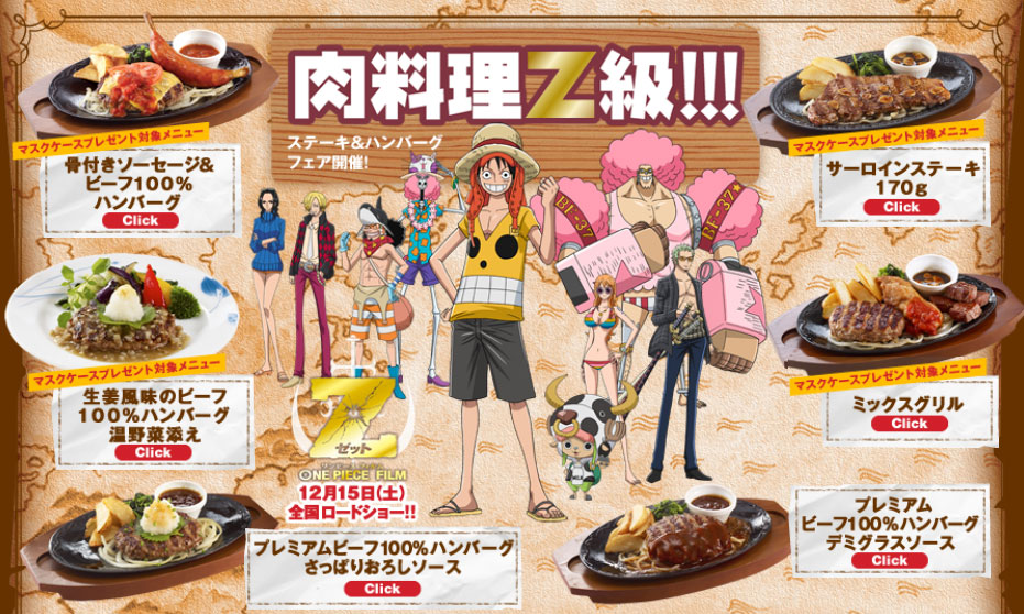 デニーズのメニューブックに映画『FILM Z』のキャラクターが登場。期間中、対象の肉料理を注文すると、