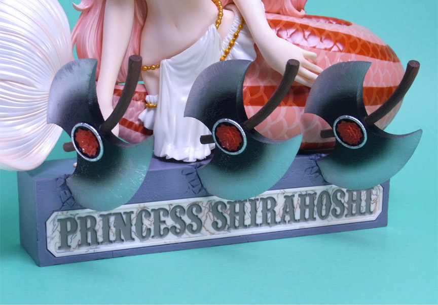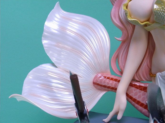 原作絵を忠実に再現した塗り分けです。これは他のシリーズでは実現できていない(価格的に)ハイレベルな塗装で、はみ出しもなく完璧。折れ曲がっているところではウロコが詰まっているなど芸が細かいです。つやありの塗装も魚っぽくていいですね。