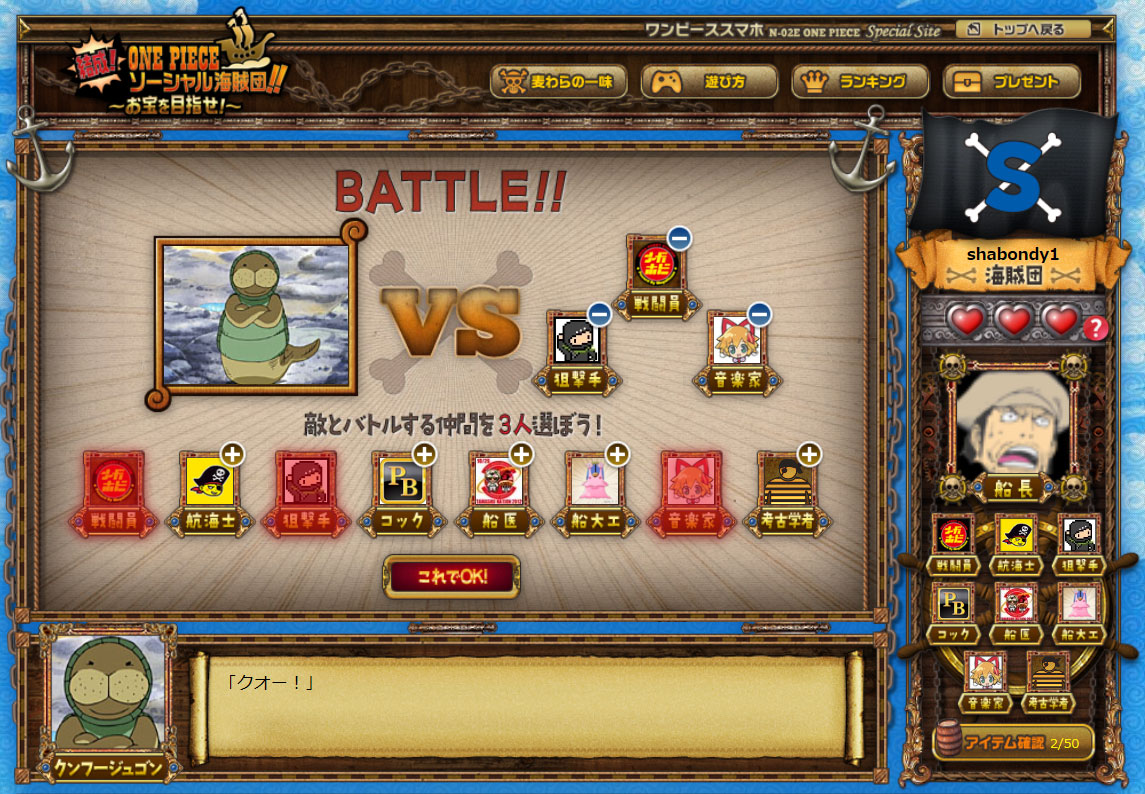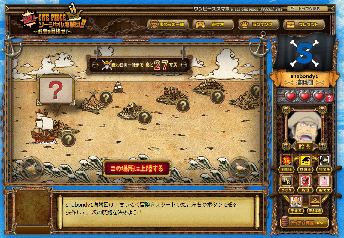 ワンピーススマホ(N-02 ONE PIECE)」公式サイト内のソーシャルゲームコンテンツ「
