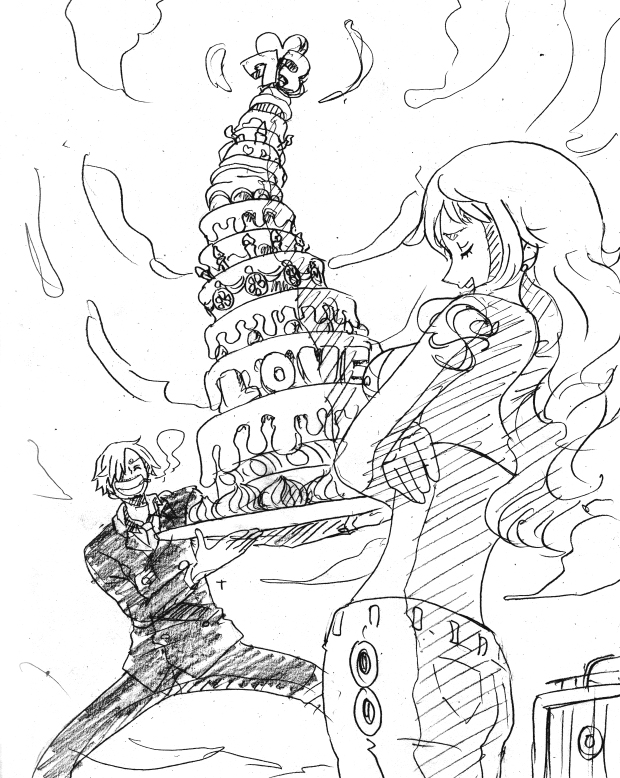 ※ナミの誕生日7月3日に投稿されたこちらの作品は、麦わらの一味がそれぞれナミを祝う様子が描かれたイラスト8枚組。