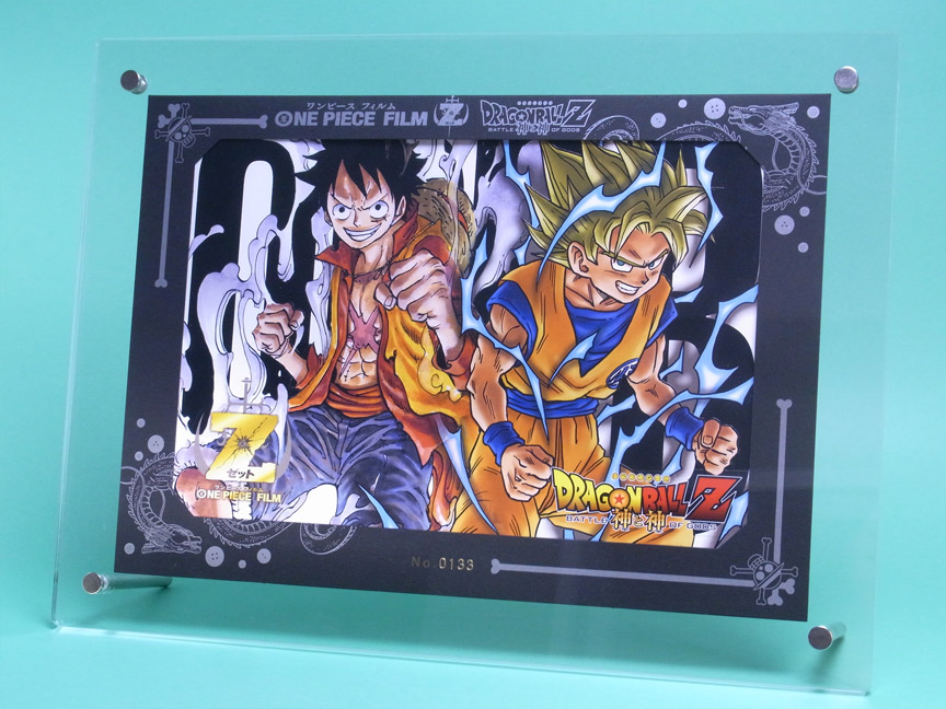 見た目にも写真でも分かりづらいのですが、ルフィと悟空及び映画ロゴは