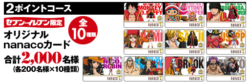 対象商品を350円(税込)購入ごとに1ポイント分のシリアルナンバーがレシートに印字。ポイントを集めて応募すると合計で2,110名にオリジナルワンピースグッズなどが当たる。