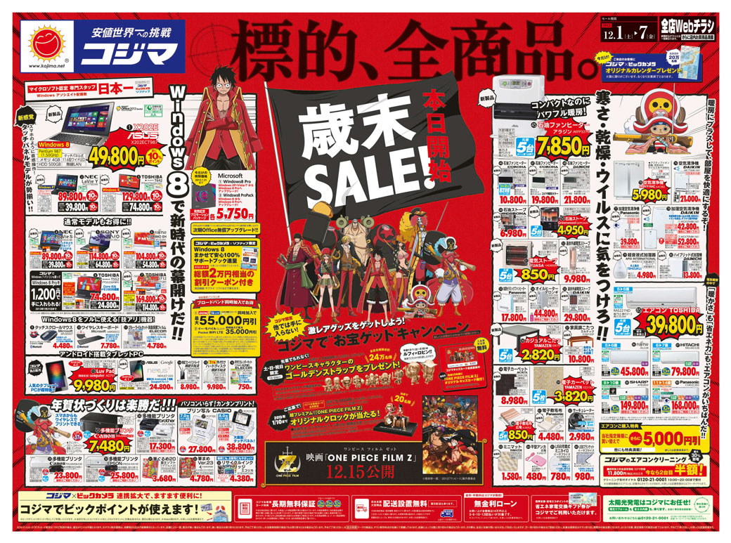 期間中、スマートフォン(コジマ推奨機種)購入でコジマオリジナル「ONE PIECE FILM Z 壁紙プレゼント」