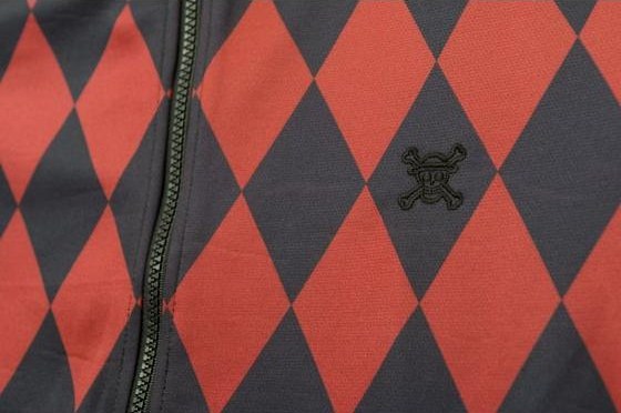 「ワンピース フィルムZ」よりサンジが劇中で着用していた、赤と黒のカラーが印象的なアノ「ひし形柄のブルゾン」がオシャレで、なおかつ普段使いを意識した本格的ジャージブルゾンになりました。赤と黒の切り替えのひし形模様が、かわいく、クールな仕上がり。麦わら海賊団の海賊旗がワンポイント刺繍でさりげなく入り、あらゆるシーンにてお使い頂けます。