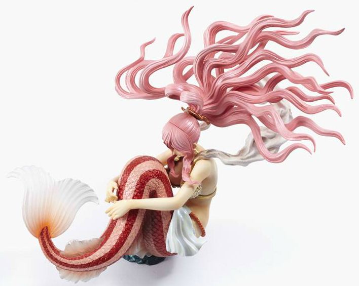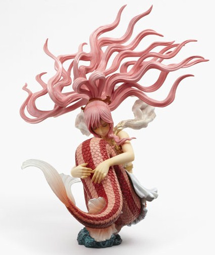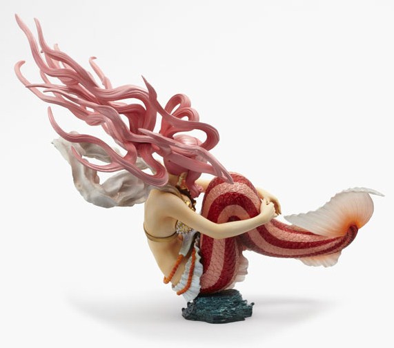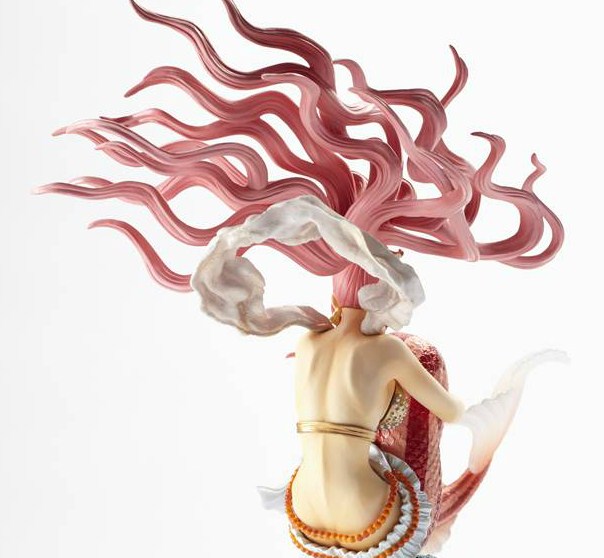 表現したかったポイントはやはり水中でゆらめく髪の毛ですネ。造形技法としてちょっとネタばらししますと、今回しらほしの羽衣は本物の布を樹脂で固めて造りました。「ちょっと反則じゃん!」と言われそうな気もしますが、自分としては既存の制作方法ではない部分も取り入れてより説得感のある原型になったと自負しています!<大谷>