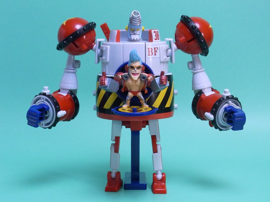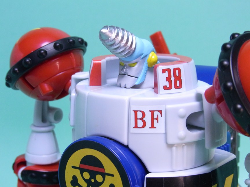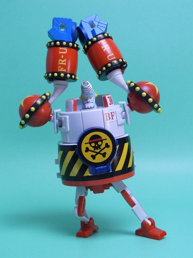 アニメ準拠になっているのはどちらも食玩の方です。股間のパーツが赤く、ボディの下部も赤くなっていることで、相撲の廻しに見えるところがフランキー将軍のチャームポイントだと思っているので、この点は重要です。