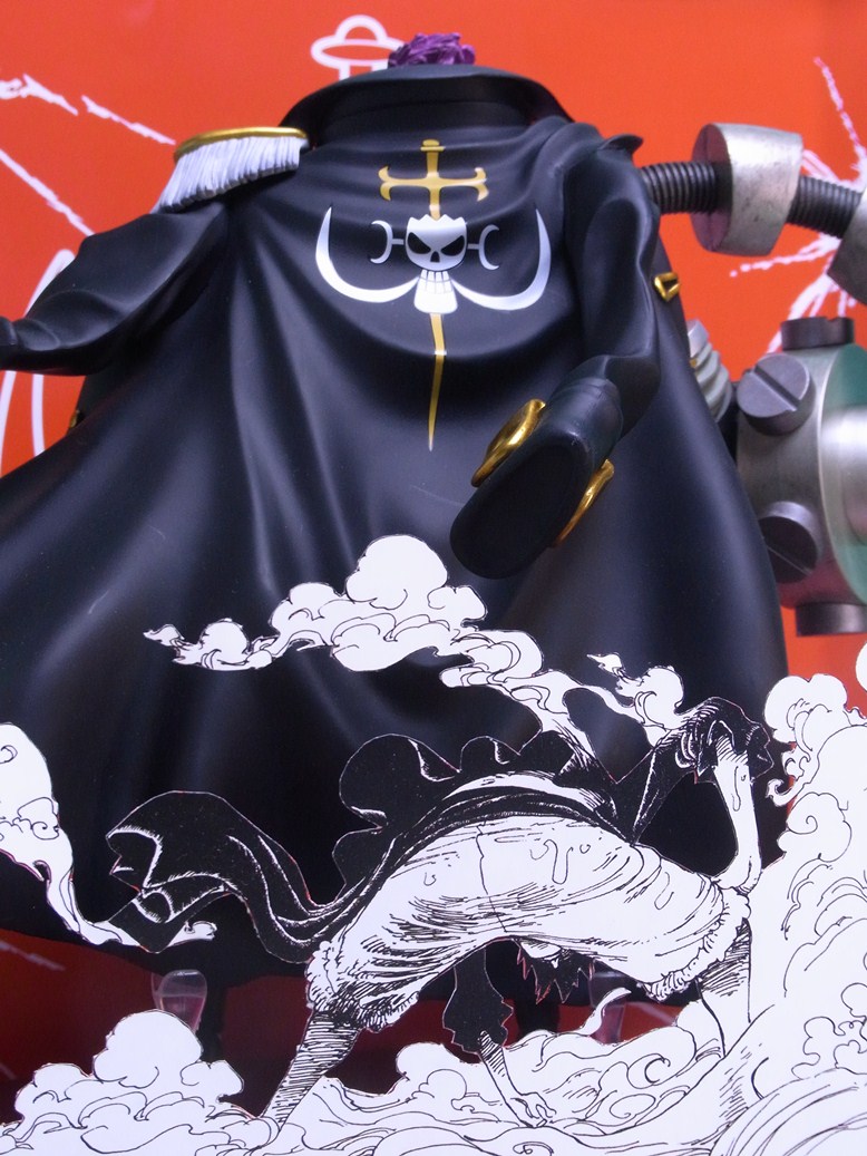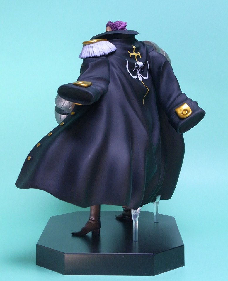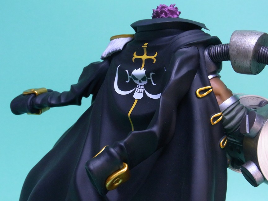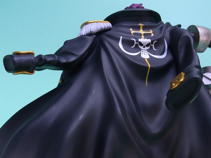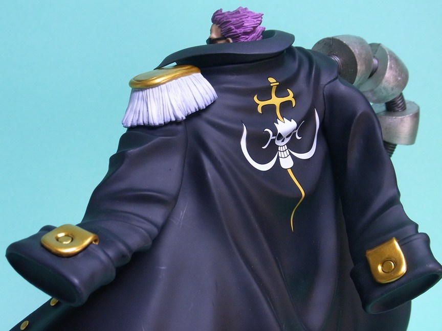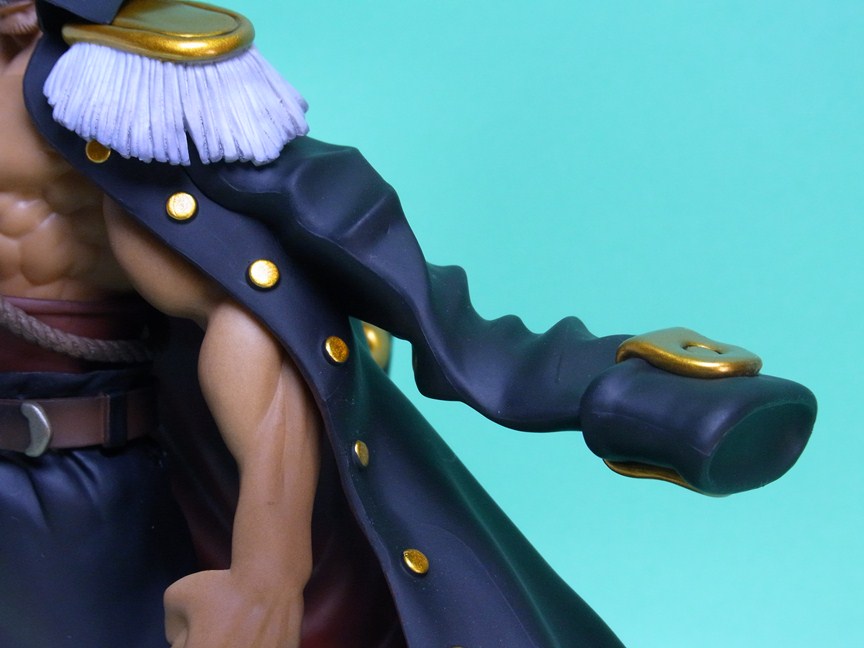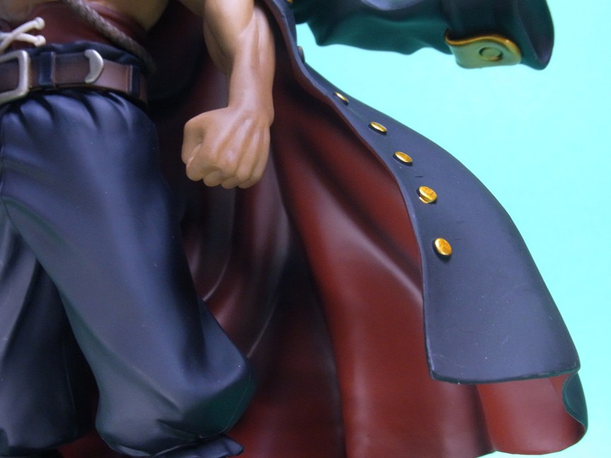 NEO海軍コートでも言うべきか、黒いコートは樹脂色ほぼそのまま。単純にたなびくコートの造形が格好いいです。裏地は赤く塗装。金具および金色の装飾部分は