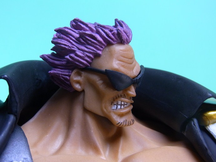 彫り込みだけで表現しています。ゼットの口ヒゲは、短いヒゲが2列になっているのが特徴的で、一応フィギュアでも再現はされているのですが、ちょっと分かりづらいです(気にもなりませんが)。逆立った髪の毛もいい感じ。曲がった口はキャラクターらしく人間味があっていい表情です。コンブを噛んでいるようにも見えますが、