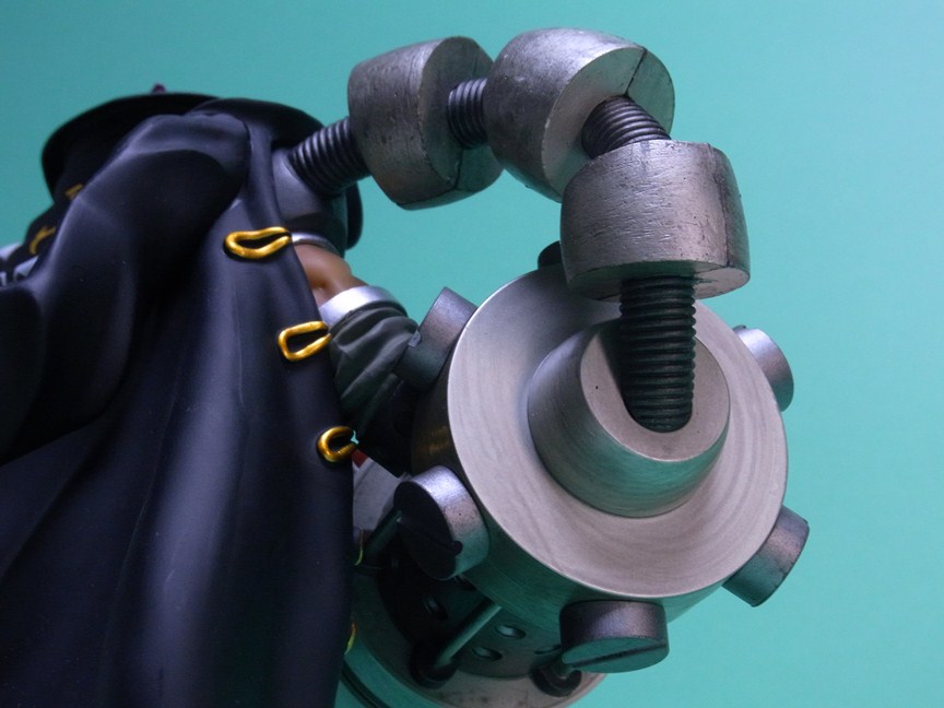 ほぼ樹脂肌に単調な塗装のコスチュームと、一見チープな印象ですが、全体の黒の塗装に対して、