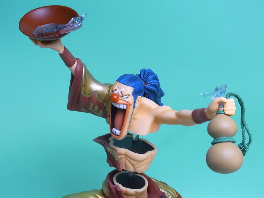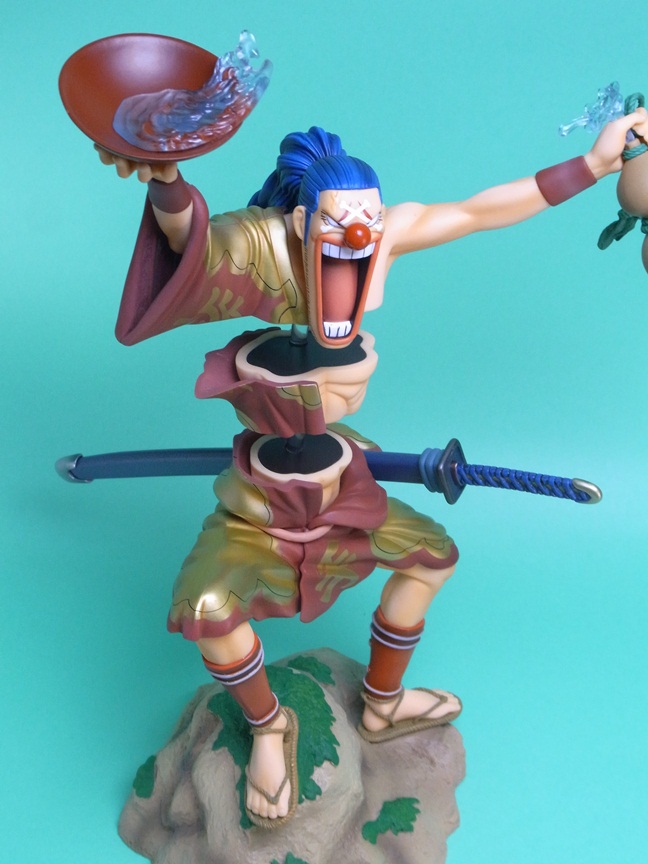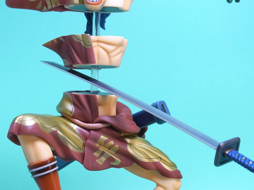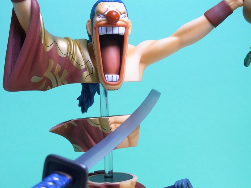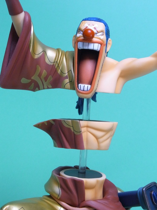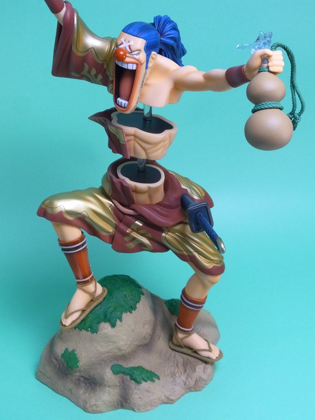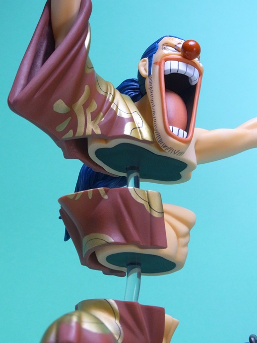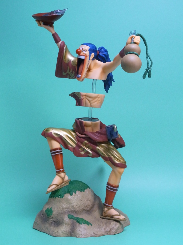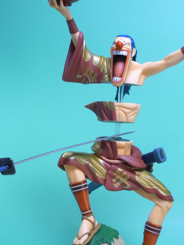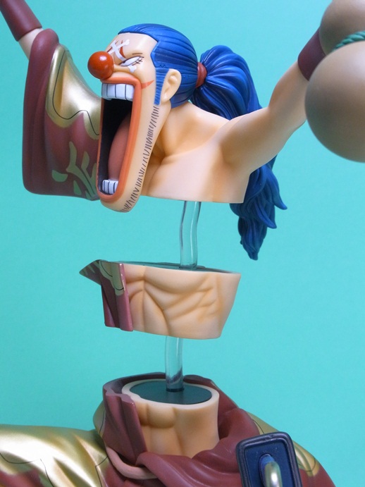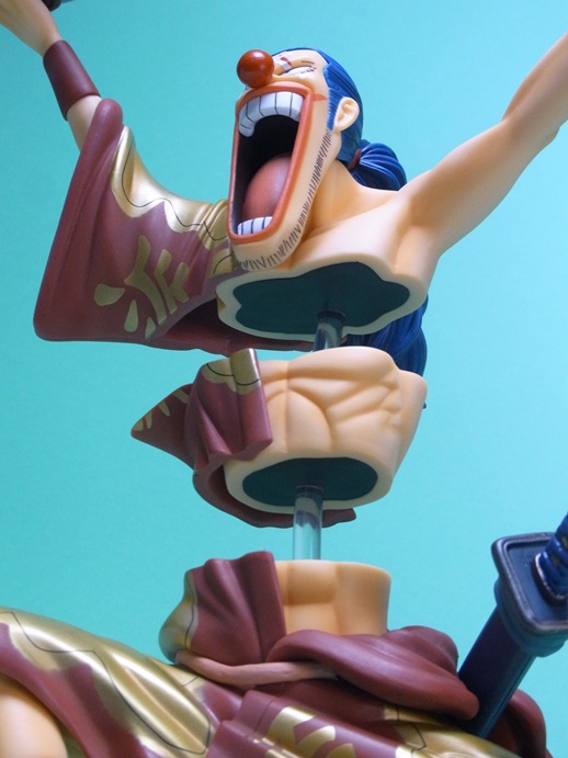 バラバラの実の能力を再現すること可能な点で、イラストの通り体を3つに分離して飾ることが可能になっています。このスケール(1/7スケール)でバラバラの能力を再現しているフィギュアはこれが唯一です。というか、このサイズのバギー自体、大変珍しいですね。
