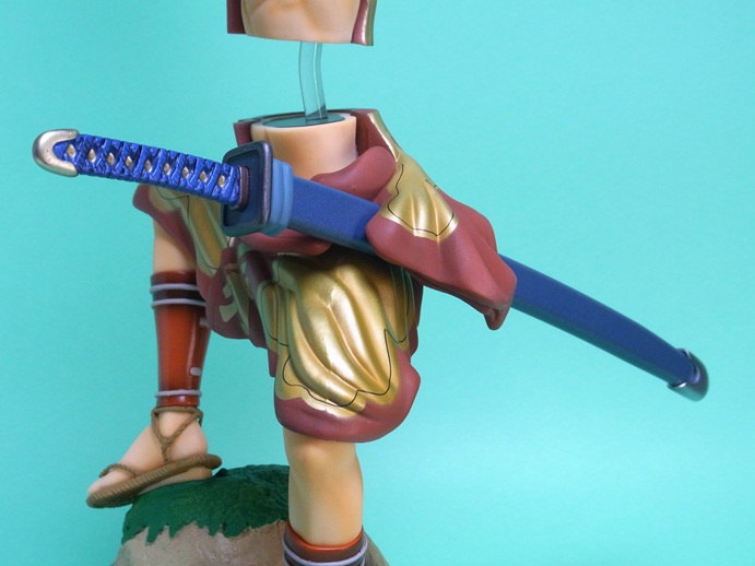 元絵では足を上げていますが、フィギュアではポージングはそのままに岩に足を乗せることで再現。