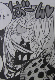 それには、めろり~んな表情のサンジが必要不可欠なんですけど、POPははっちゃけた表情パーツ付けてくれないから、無理かな。スケール違いますけど、