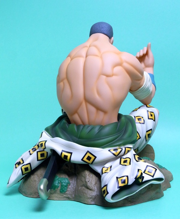 写真で白が飛んじゃってますが、実際は包帯と着物の白い部分はもっと薄汚れた感じ複雑な色合いになっています。また、上半身は中空構造のため、見た目より軽いです。