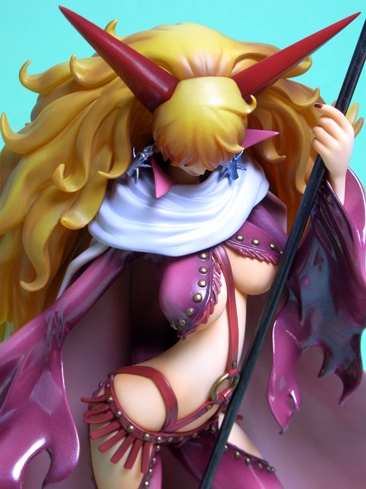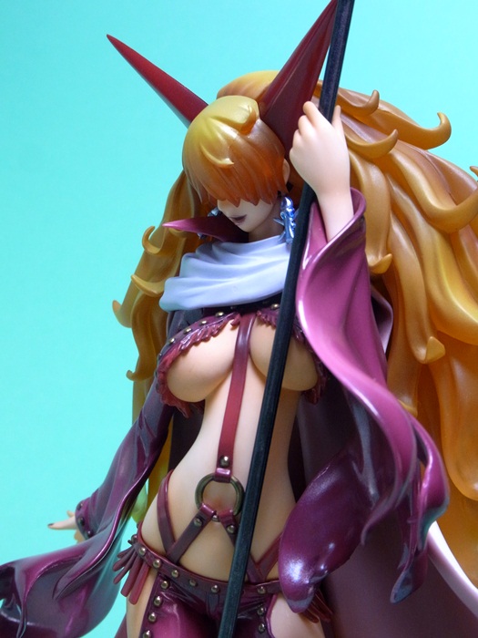 革の衣装にはツヤ有りでパール塗装が施されており、革紐の部分とは塗り分けがされています。また、単調にならないようグラデーションがかかっており、この辺りはP.O.Pクオリティといったところです。