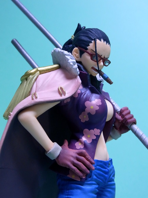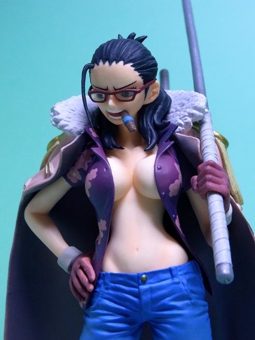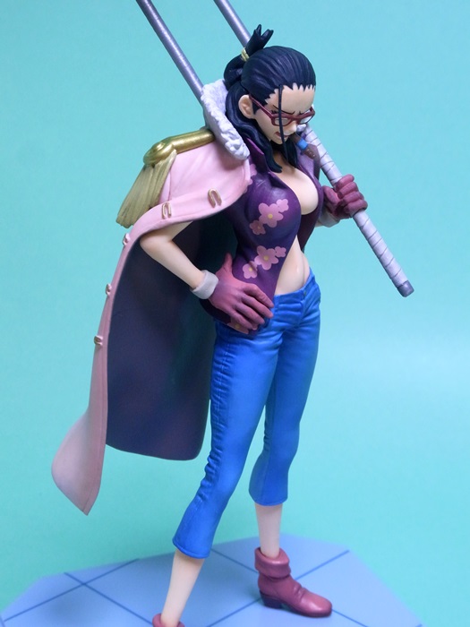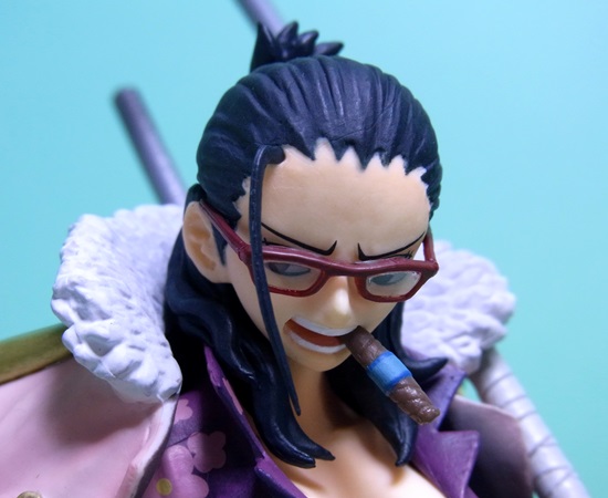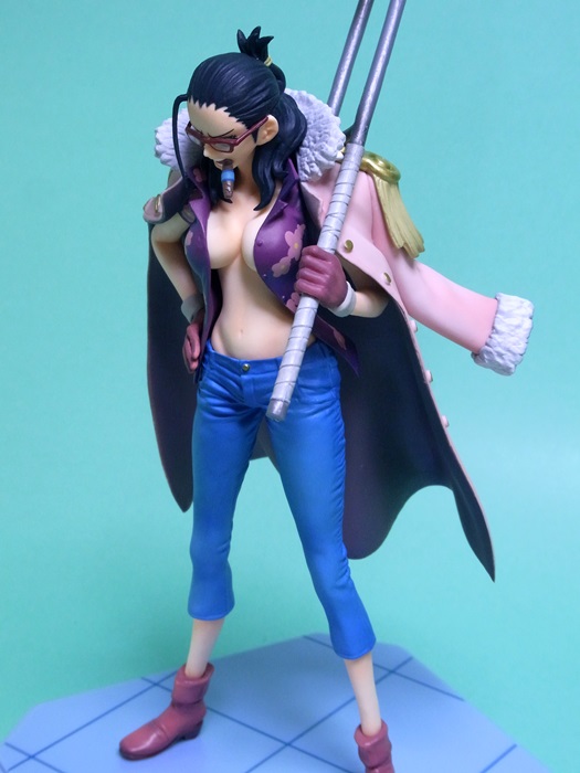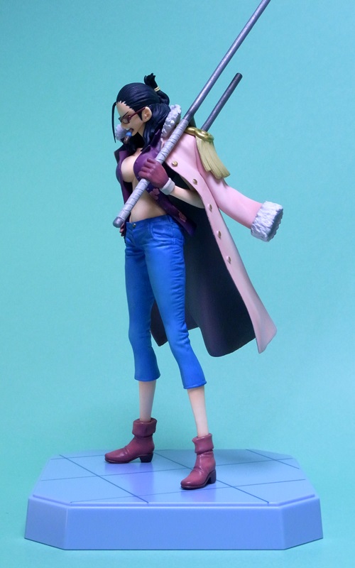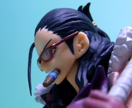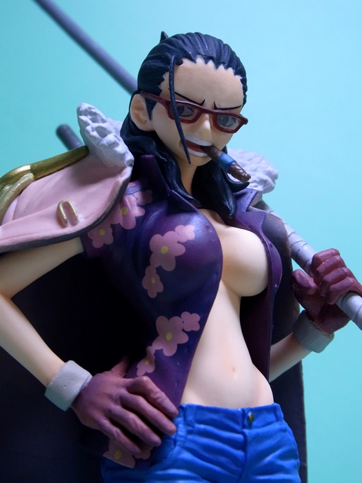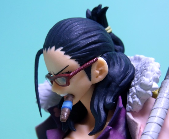 ほぼ完璧な出来上がりですが、細かいことを敢えて言うとすれば、まつ毛が目じり側だけにある、鼻がやや高い、耳がやや大きいです。まつ毛の位置はP.O.Pのワンピ女性キャラでもよくある原作との相違点です。ちなみに、たしぎ(スモーカー)の場合は、まつ毛は描かれていないこともあり、まつ毛は無くても実は成立します。