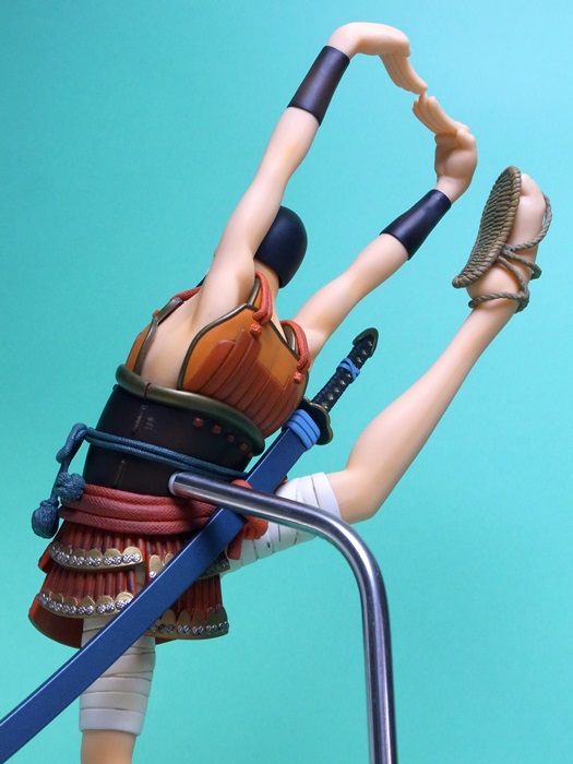 接地している左足はボン・クレーらしくバレエのつま先立ちを再現。実際、フィギュアの自重がかかっているので、写真では伝わらないリアリティがあったりします。見所は土踏まずや草履の造形など。