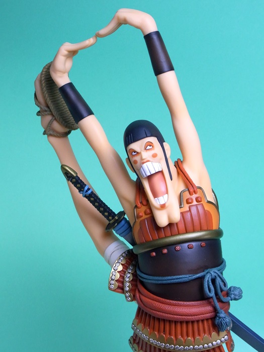顔は扉絵の表情をそのまま再現しており、キャラクターらしさが良く出ています。大きいサイズだからこそ可能な笑窪といった細部の顔の凹凸まで見事に造形されています。