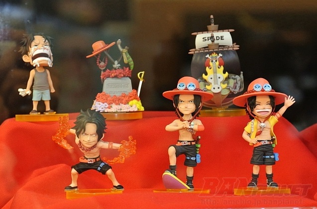前の月にワーコレの白ひげ海賊団が登場する流れなのか、ここに来て再びエースがフィーチャー。ラインナップは左上からサボの手紙を読んで大泣きする幼少期のエース(10歳)、エースの墓、スペード海賊団の海賊船、マリンフォード編で救出されたエース、短期扉絵連載で黒ひげを捜しに向かうストライカーに乗ったエース、コルボ山から海に旅立つエース(17歳)となっています。エースづくしですw