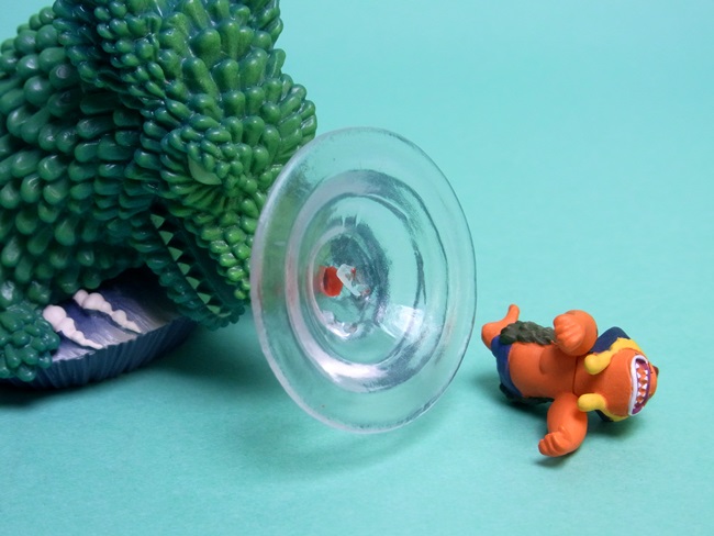 ダルマは両膝をダボ接着で”衝撃波”のクリアパーツに固定する仕様。”衝撃狼草”の鼻に接着する”衝撃波”のダボ部分は赤く塗られており、