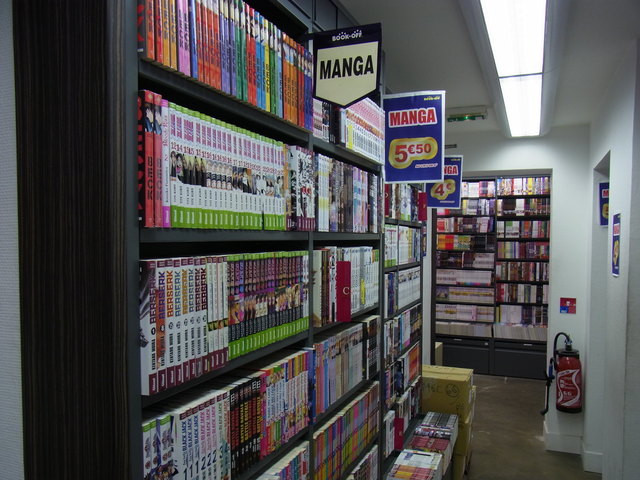 ブックオフがパリに店舗を持っているみたいです。しかも、日本語書籍を扱う在仏日本人向けの店舗(2004年オープン、1店舗)とフランス語書籍を扱うフランス人向けの店舗(2007年オープン、2店舗)があるとのこと。