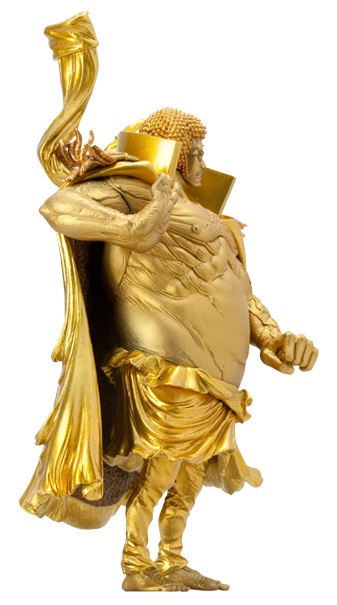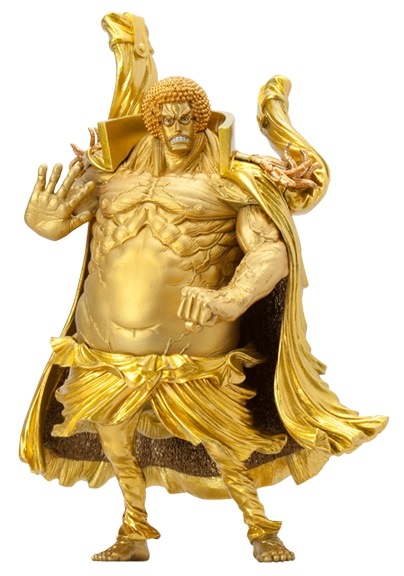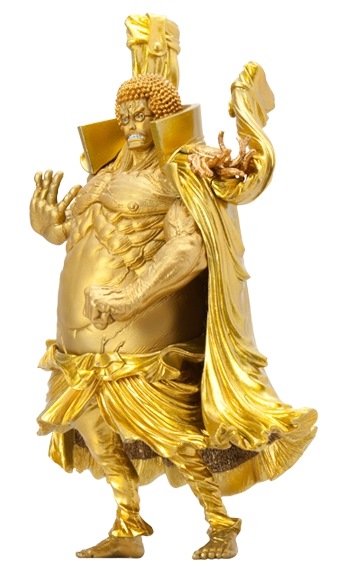 ▼キャラクター希少度◎。キャラクター人気△。「こんなセンゴクを観れるのはBFC造形王だけ!」と言う通り、このサイズのセンゴクの獣型は希少。金ぴかの仏バージョンは「単色塗装」の新ルールに噛み合っています。が、女子ウケを切り捨てています。溢れ出る”仏像感”は、ポージング、服・皺造形、筋肉造形を実際の仏像、特に金剛力士像を参考にしているためでしょう。画像に写っているプレゼン用?のデザイン画ではもっと恰幅がよく横幅がある原作に近い体型をしているのですが、縦長になっているのは、金剛力士像に寄せたためなのか、サイズボックスの規格に合わせたためか。いくら女子ウケを無視しているにしても、血管の造形はやりすぎでちょっと気持ち悪いかも?w