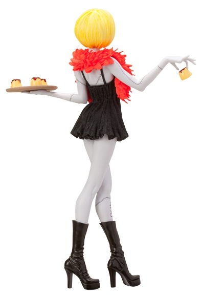 ▼キャラクター希少度◎。このサイズのシンドリーは大変希少です。「単色塗装」という新ルールに対しては「ドール風表現」を考案。髪、服が単色になるのは必然、肌部分の樹脂のつやは寧ろ好都合というわけです。口が別パーツというのはよく分からないですが、目が別パーツなのは、これも「ドール風表現」の追求でしょう。体型はリアルに寄せているため、”尾田絵”から遠ざかったのは良かったのか悪かったのか。本来のくびれが消えてドレスがマタニティドレスに見えてしまうのは私だけ?というか、肋骨の造形いる~~?w おかげで鎖骨の造形がリアルになっています。髪の毛は一本一本、細い銅線を貼り付けて造形したとのことですが、この原型ではまだ制作途中のようです。