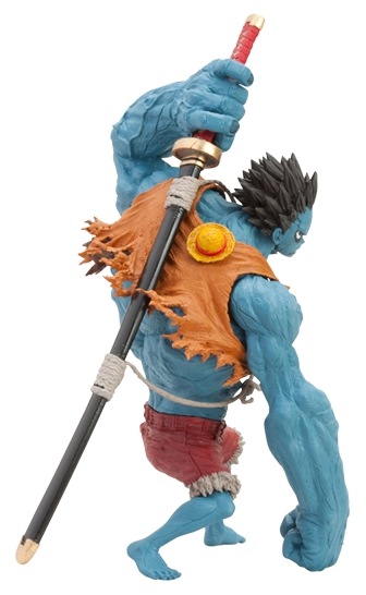▼キャラクター人気◎。単色塗装(品質の低さ)はキャラクター人気でカバーしようという戦略意図があるかは露知らず(※第1回造形王ではゾロで準優勝だったので・・・)、目線を敢えて隠すという戦略はいい働きをしそうです。と言うのも普通の人型フィギュア、特にローのようなイケメンの場合、キャラ人気に相反して単色塗装の顔でチープな印象を与えてしまうのは免れないので、隠しておいた方が見た目の印象は良くなるでしょう。服皺の造形はリアルで、すでに陰影がよく出ているため、単色塗装後、陰影によるグラデーションが期待できそうです。帽子の質感もいい感じ。ポーズは「立ちポーズから『これから戦うぞ!』という瞬間」だそうですが、鞘から刀を抜いた動きがイマイチ伝わってこず、寧ろ”静”な印象を受けます。