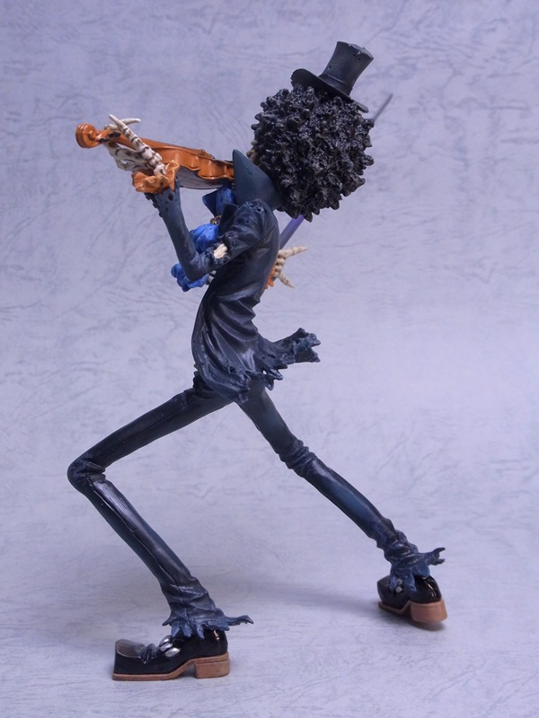 ”ヨミヨミの実”の能力者、死んで骨だけブルック。コスチュームは”2年前”のもので、ヴァイオリンを持って仕込み刀を構えたポージングはオリジナルになります。細身の造形でありながら、意外にも自立します。剣先がやたら丸い。。