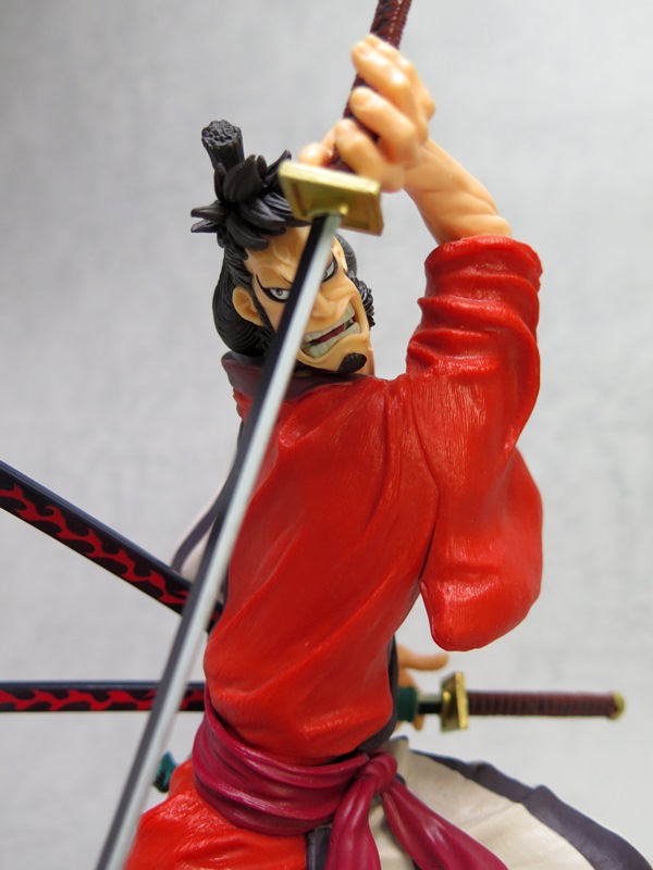 顔はモモの助を助けるためパンクハザードに来た時の鬼の形相を再現。目は平面的ではなく、目の周りが彫られ、瞳も彫られています。開いた口の中は歯と舌が再現され、