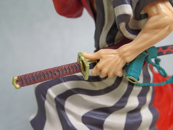 おそらくワンピースに限らずフィギュアとしても珍しいこのポーズ。首筋には血管が浮き出て、胸元にはゴリゴリの筋肉がちらっと見えています。腕の筋肉の筋と隆起がリアルです。