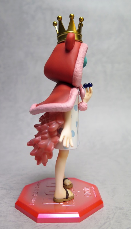 羽つきケープ、フードつきヘッド、グレープつき左腕パーツ差し替え。台座・冠込みで14センチです。前傾姿勢になっているのは、ケープの重さを加味して重心を中心に戻すために設計されているようです。それでも重心は後ろにあるので自立はできません。