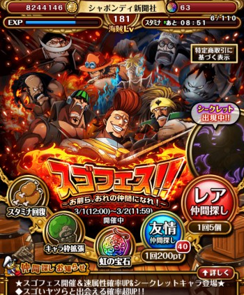 白ひげ海賊団のガチャ限定キャラの出現率が超アップだお