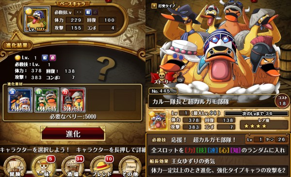 カルーのスキルは今のところ進化→同キャラ合成でしか上げることが出来ない上に