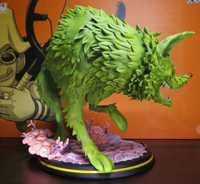 製品版の劣化はある程度覚悟した上で、このメーカーのフィギュアを初めて買ってみたのですが、塗装や造形はハイ(H)クオリティ(Q)スタチュー(S)に偽りなく高品質なものでした。素材が主にレジン製であること、(ユーロ高のせいで)送料も含めて価格がどえらい高いことに難はありますが、それを吹き飛ばすのに十分すぎる程の圧倒的な存在感です。このサイズのインパクトウルフが国内正規品で作られることはまずないでしょう。