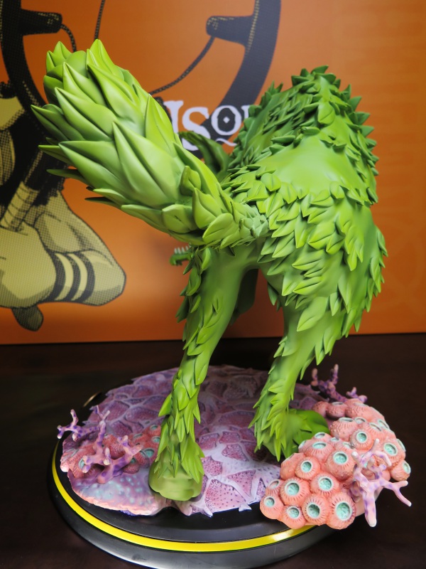台座は魚人島をイメージしたジオラマが施されています。直径は30センチですが、ジオラマのはみ出しも入れると全長は40センチになります。サンプル画像で最初見た時はグロい印象があったのですが、フィギュアを載せた時に彩りが良く、見栄えがいいです。