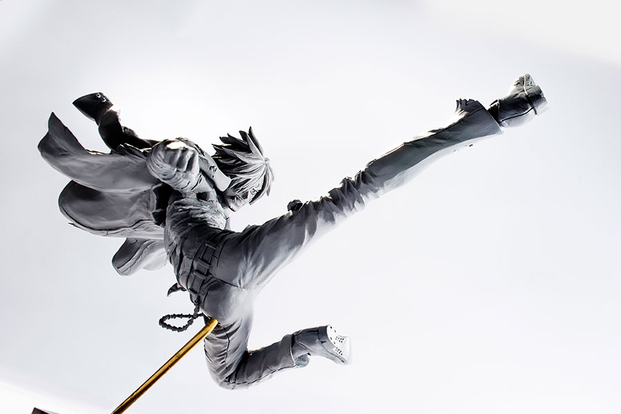 KOZO:このような決めポーズの場合、手前にある足から顔までの距離が遠いため、顔の印象が弱くなってしまいがちですが、設定よりも目を大きく作ることで顔の印象を強くし、体の造形スタイルとあわせて死闘感が出ていると思いました。