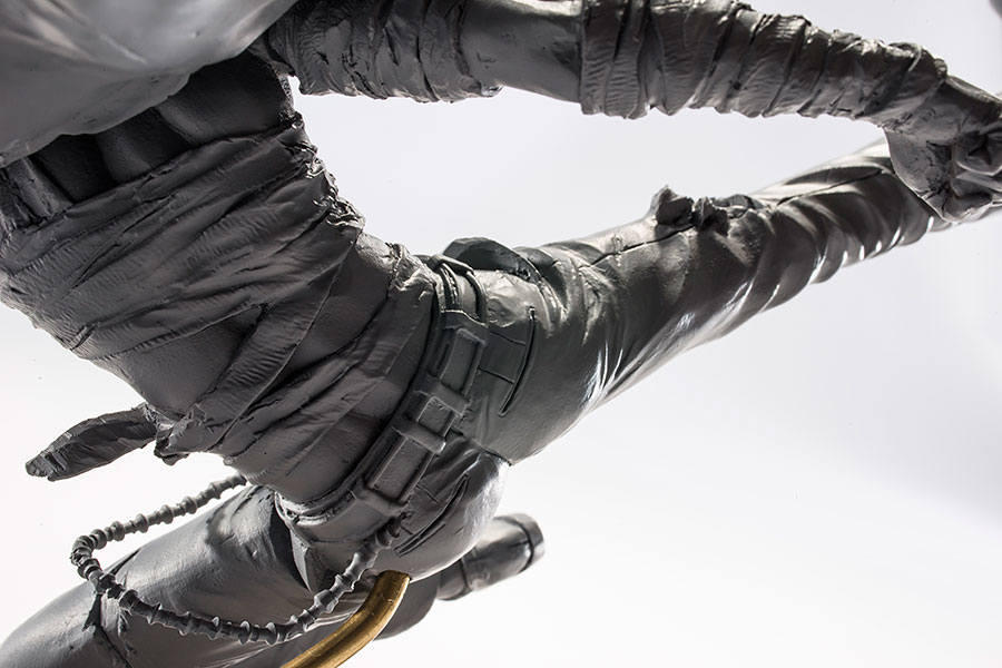 KOZO:迫力のあるポーズと勢いのある造形スタイルが、サイトウヒールさんらしい表現になっていると思いました。造形スタイルに関しては、異素材の境界線など(体と包帯や靴とソウルとの境界線など)に揺らぎやねんど感をのこしていたり、細部まで作り込まず、見ている側に作り手の勢いを感じさせ、素材感や戦いのダメージを想像させるような造形スタイルだと感じました。
