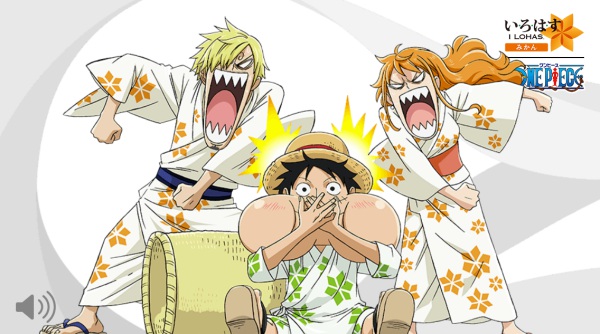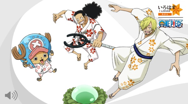 コカ・コーラ社の「い・ろ・は・す」とONE PIECEのコラボボトルが発売中。ボトルに記載のQRコードをタブレット端末(ジャイロセンサー搭載)で読み取ると、特設サイトにジャンプして、『動く!しゃべる♪お楽しみコンテンツ』で遊ぶことができます。コンテンツはボトルデザインごと全3種あり、右に傾ける、左に傾ける、水平に戻す、何も動かさないの4つのアクションにキャラクターが反応するというもので、