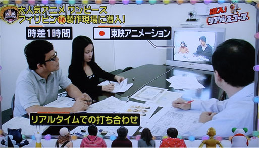原画作業は日本のアニメ監督(宮元宏彰さん)が描いた絵コンテ(漫画でいうネーム)から起こすのですが、その打ち合わせはWEBカメラを利用してテレビ会議で、日本の監督とフィリピンの原画担当が通訳を交えて行います。