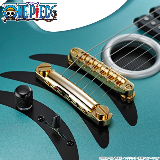 外観の再現性はもちろんのこと、ギターとしての品質も重視して設計しました。ハードウェアには高い品質のGOTOH製を採用し、ボディにはアメリカンバスウッドを採用しクセのないサウンドと軽量化を実現しました。MADE IN JAPANならではの決め細やかな工夫が随所に光っています。さらにオリジナルのプレートが付いた豪華なハードケースやオリジナルロゴ入りストラップ、シリアル入り認定証が付属します。「ONE PIECE」ファンはもちろん、実用性も抜群な新しいコレクションとして、すべてのギタリストにおすすめです。