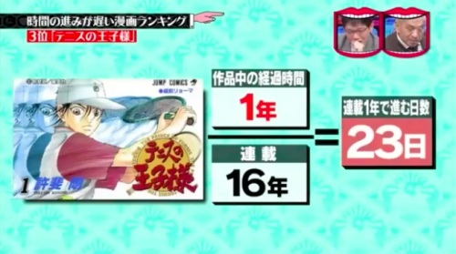 作品中の時間経過 ÷ 連載年数 = 現実の1年で進む作品中の日数)では