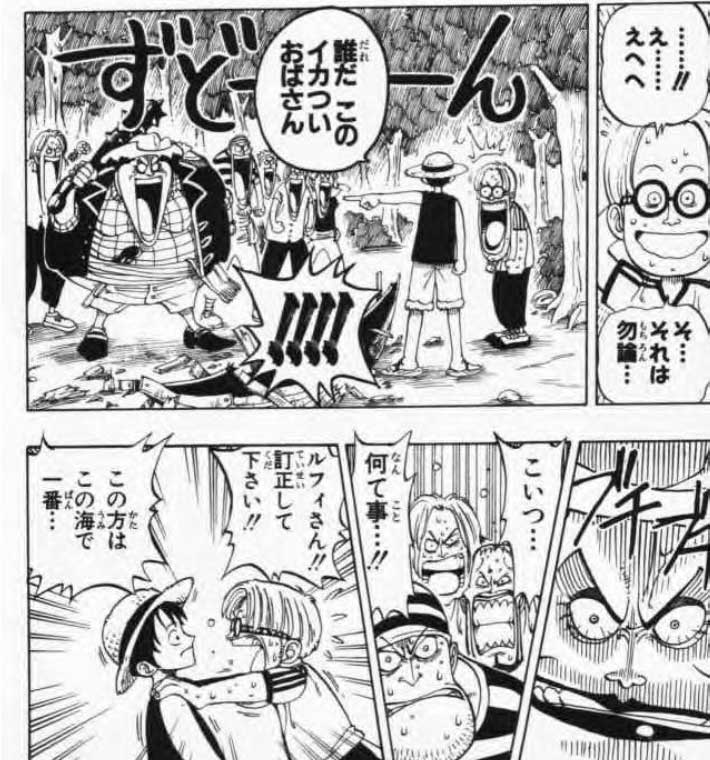 2.ルフィのセリフに対し、悲鳴を上げている人物の名前を答えなさい。