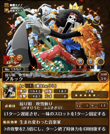 ※キャンペーンでフランキー(漆黒)、ロビン(琥珀)、ブルック(翠)の専用スカルクリスタルのうち、どれか1つを貰う事が出来ました。