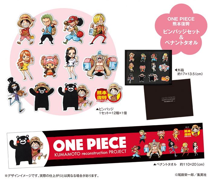 中野博之編集長と名刺交換をするくまモン。 同プロジェクトは尾田の故郷であり、2016年4月の地震で甚大な被害を受けた熊本を支援するべく立ち上げられたもの。第1弾として2016年11月から2017年3月にかけて、「ONE PIECE」グッズが返礼品としてもらえるふるさと納税や、同作のグッズが手に入るスタンプラリーなど5つの取り組みが行われた。