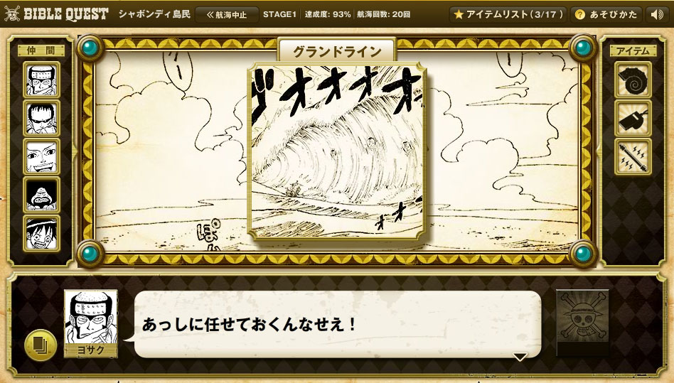 キャラクターの特性生かしたり、ワンピファンならではの知識を使って試行錯誤しながらクリアを目指します。