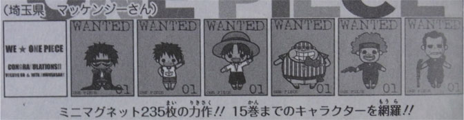 15巻までのキャラクターを網羅したミニマグネット235枚だそうです(すげー
