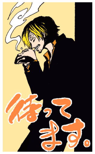 「ちょ 待てよ!!」「ぶっちゃけ」など木村拓哉さんをイメージするセリフが添えられています。エースは「KAME NASHI」の文字が入ったサングラスをかけています。栄ちゃんによると木村拓哉さんはシャンクスのイメージなのですが、亀梨和也さんはエースのイメージなのでしょうか。サンジの「待ってます」は、まさか2009年にSMAPの草なぎ剛さんが公然わいせつ罪で逮捕され芸能活動を休止していた際の木村さんのコメントなわけないか…w