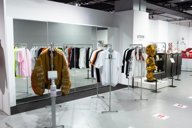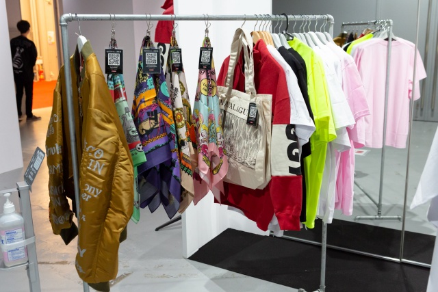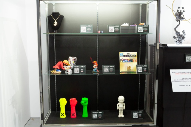 会場限定グッズ。写真奥が抽選販売品の展示。