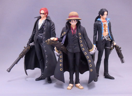 2009年公開した大ヒット映画「ONE PIECE FILM STRONG WORLD」で登場したスーツ姿のルフィと、ストロングスーツスタイルのエース、シャンクスを新規立体化いたしました!!